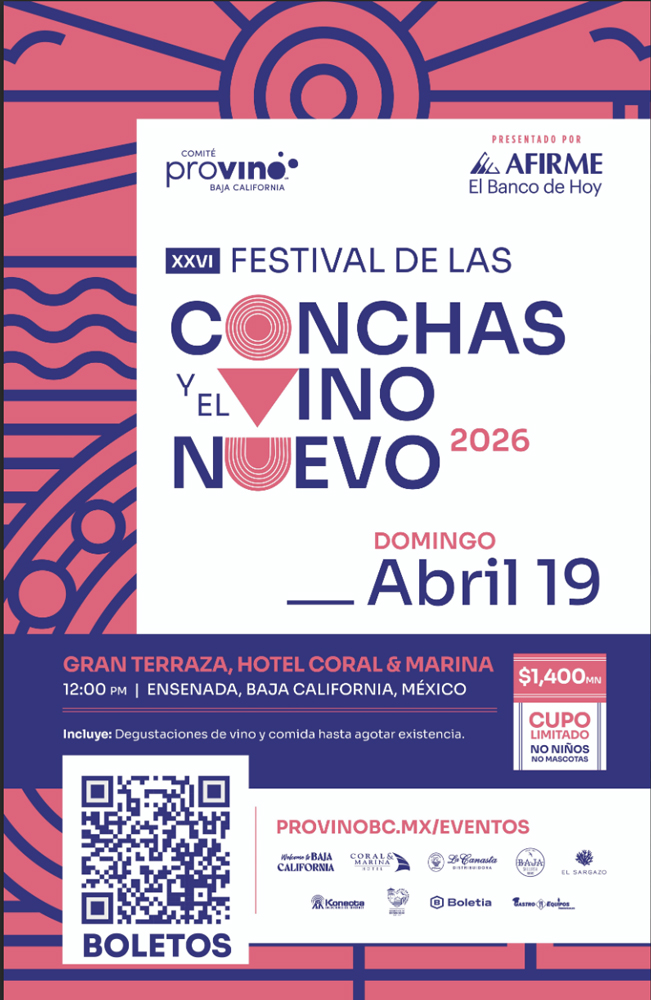 El primer evento del año que reúne a lo mejor de Baja California se acerca, el Festival de las conchas y el vino nuevo, que celebrará su vigésima sexta edición.
