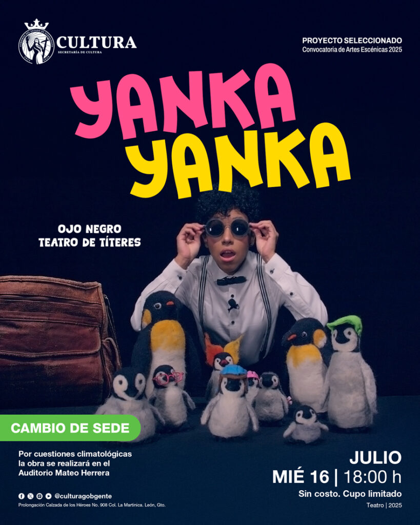 “Yanka Yanka” es una obra que, a través de títeres de acción directa y una narrativa sensible, relata las vacaciones de una familia de pingüinos que decide viajar lejos del Polo Sur para conocer nuevos lugares y animales.