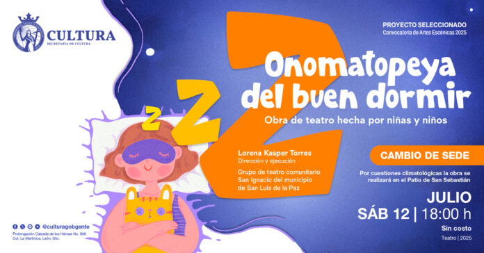 El espectáculo infantil “ZZZ Onomatopeya del buen dormir”, a cargo de la compañía guanajuatense Teatro Demediado y será en el Patio de San Sebastián, en el Forum Cultural Guanajuato.