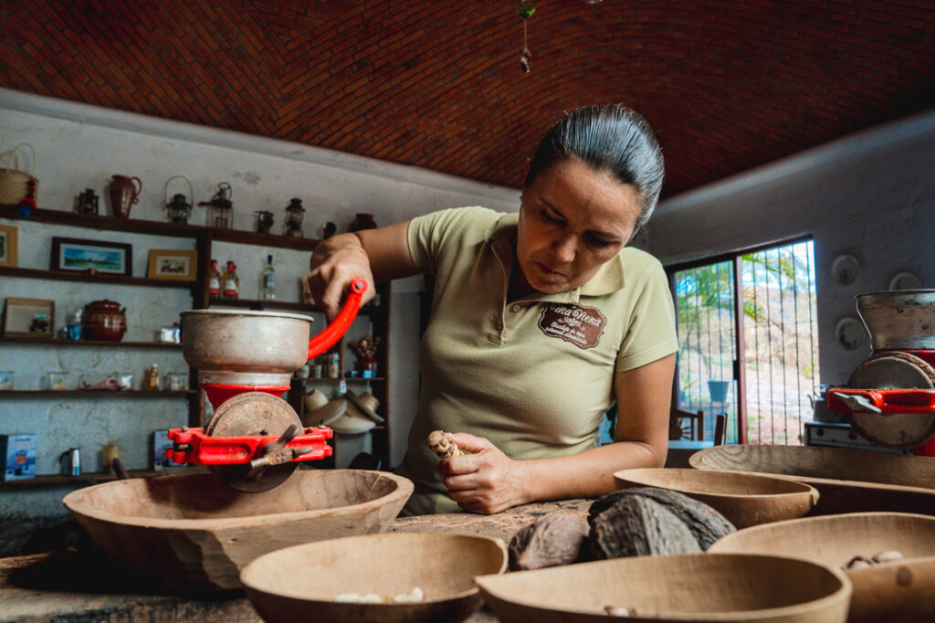 En el Taller de Chocolate Manena, la experiencia es íntima, casi ritual. Desde el tostado del cacao hasta el formado de tablillas, participas en un proceso que no es sólo técnico, también espiritual.
