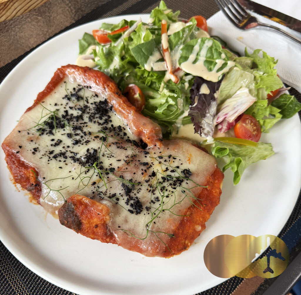 Creímos que, para un chico en pleno crecimiento, con apetito como el de un león, sería buena opción una milanesa napolitana y no nos equivocamos. El tamaño de la milanesa fue vasto, y la preparación, deliciosa. La ensalada que le acompañó hizo buena mancuerna y no quedo a deber; en relación de la calidad de la carne aun y siendo milanesa, fue excelente.