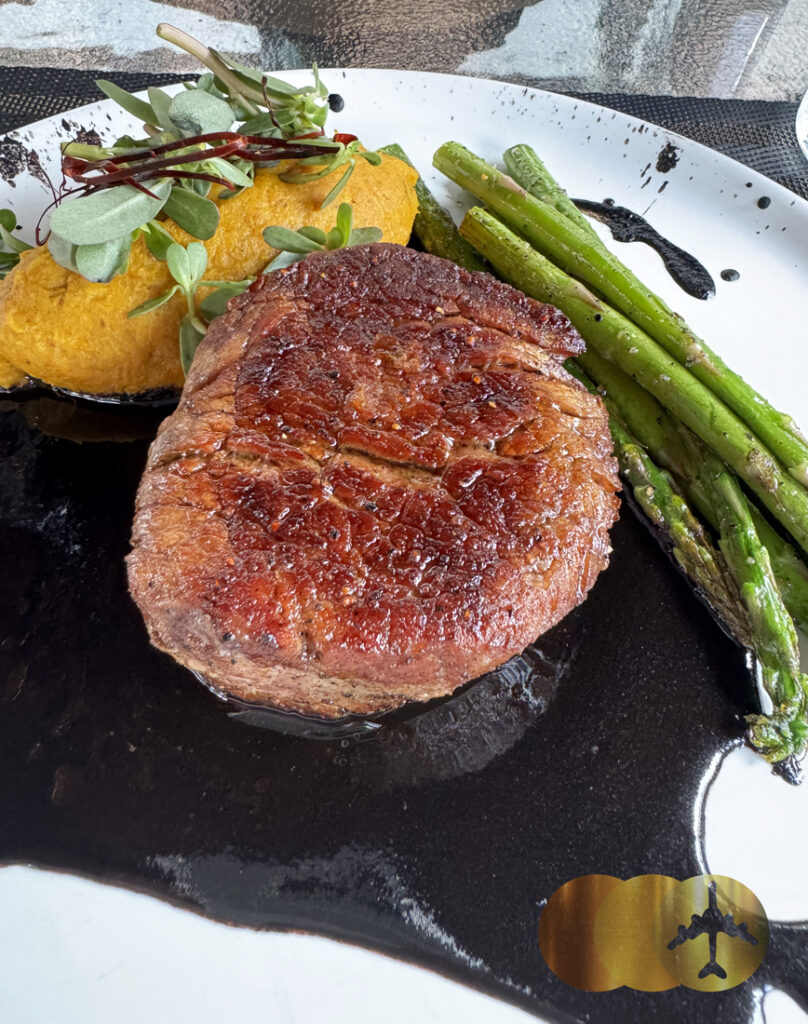 El acompañamiento fueron espárragos y puré de plátano macho. Éste último mezclado con el chichilo y el filete fue una experiencia magnífica. De esos platillos que seguramente no tiene comparación con ninguna otra experiencia.
