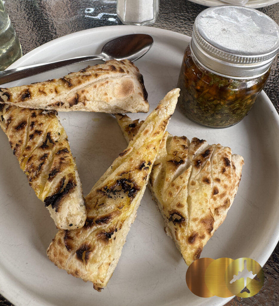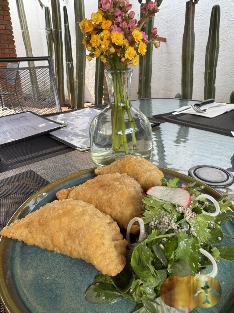 Como el hambre no nos dio tregua al llegar, también de entrada pedimos unas empanadas, fueron de queso, jamón con queso y carne. Sin quitarle mérito a las empanadas que, si bien estuvieron deliciosas, la ensaladilla de cilantro y verdolaga con el aderezo de la casa me robó más el corazón.