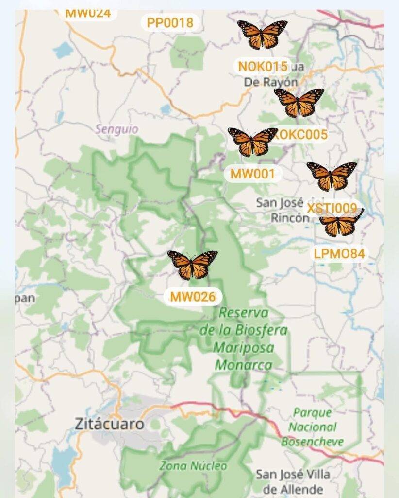 “El fenómeno migratorio de la mariposa monarca volvió a escribir una página histórica. Por primera vez, ejemplares equipados con microtransmisores satelitales han llegado a territorio mexicano, específicamente al Santuario de El Rosario, en el municipio de Ocampo, Michoacán, dentro de la Reserva de la Biósfera Mariposa Monarca, marcando un hito científico y ambiental sin precedentes”, dijo Roberto Monroy García, titular de la Secretaría de Turismo de Michoacán.