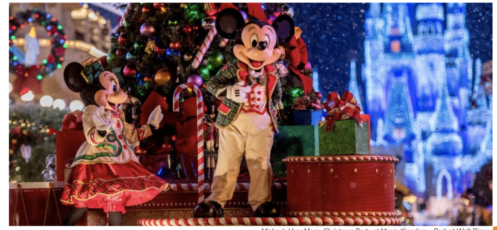 Mickey’s Very Merry Christmas Party en Magic Kingdom Park (noches seleccionadas, del 7 de nov. al 21 de dic.) transforma el parque en un cuento navideño con el desfile “Mickey’s Once Upon a Christmas Parade”, el show de fuegos artificiales “Minnie’s Wonderful Christmastime Fireworks Show”, nieve sobre Main Street U.S.A., bebidas festivas y galletas de cortesía.